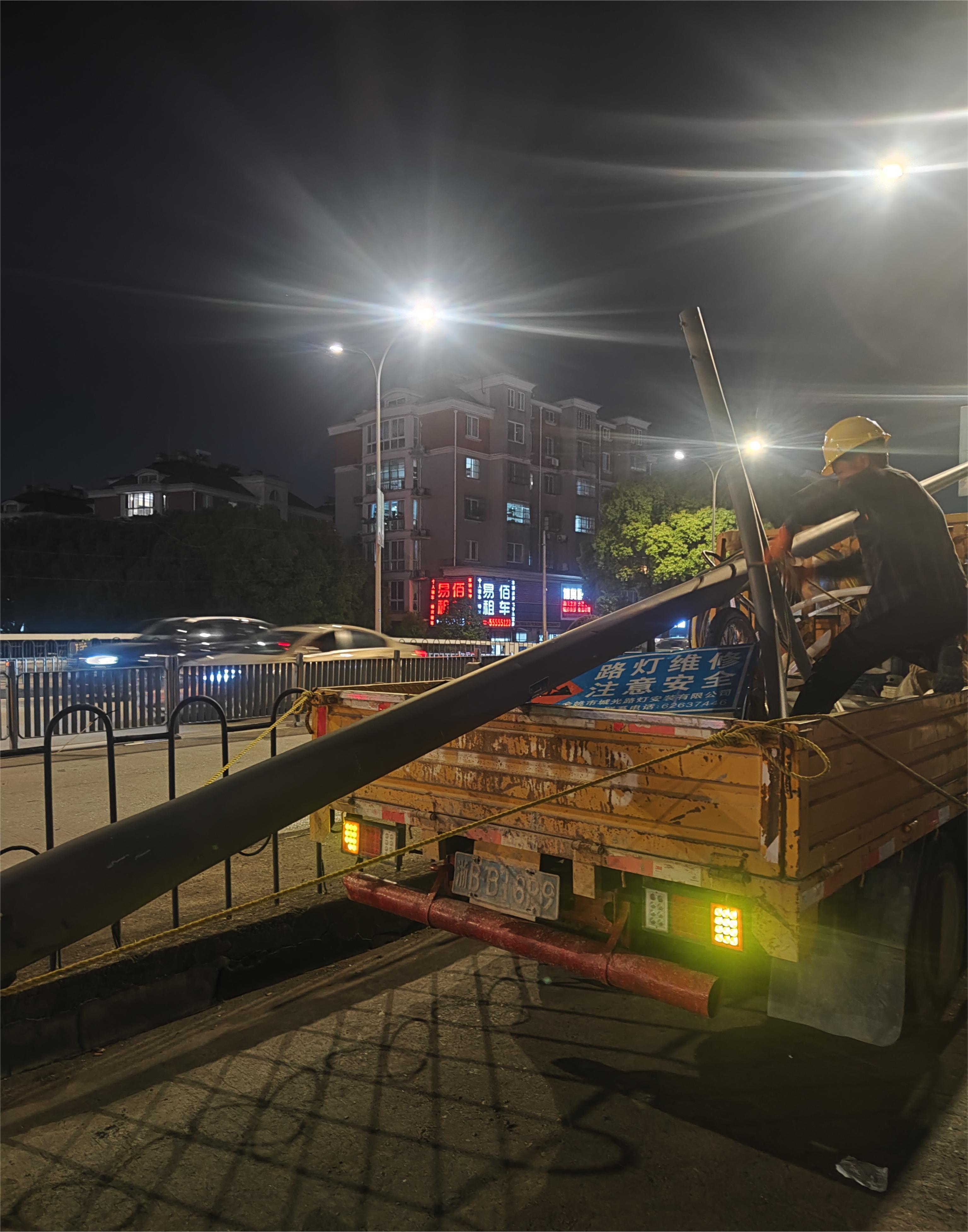 城光公司搶修人員立即趕赴現場,經現場勘查后發現被撞路燈桿已無法修復,急需拆除,搶修人員立即切斷路燈電源,在現場設置安全圍擋后,對燈桿內破損的電纜線進行絕緣等安全處理。經過近一個小時緊張有序的搶修,被撞燈桿被成功拆除并拖離現場,同時恢復了該路段的夜間正常照明。