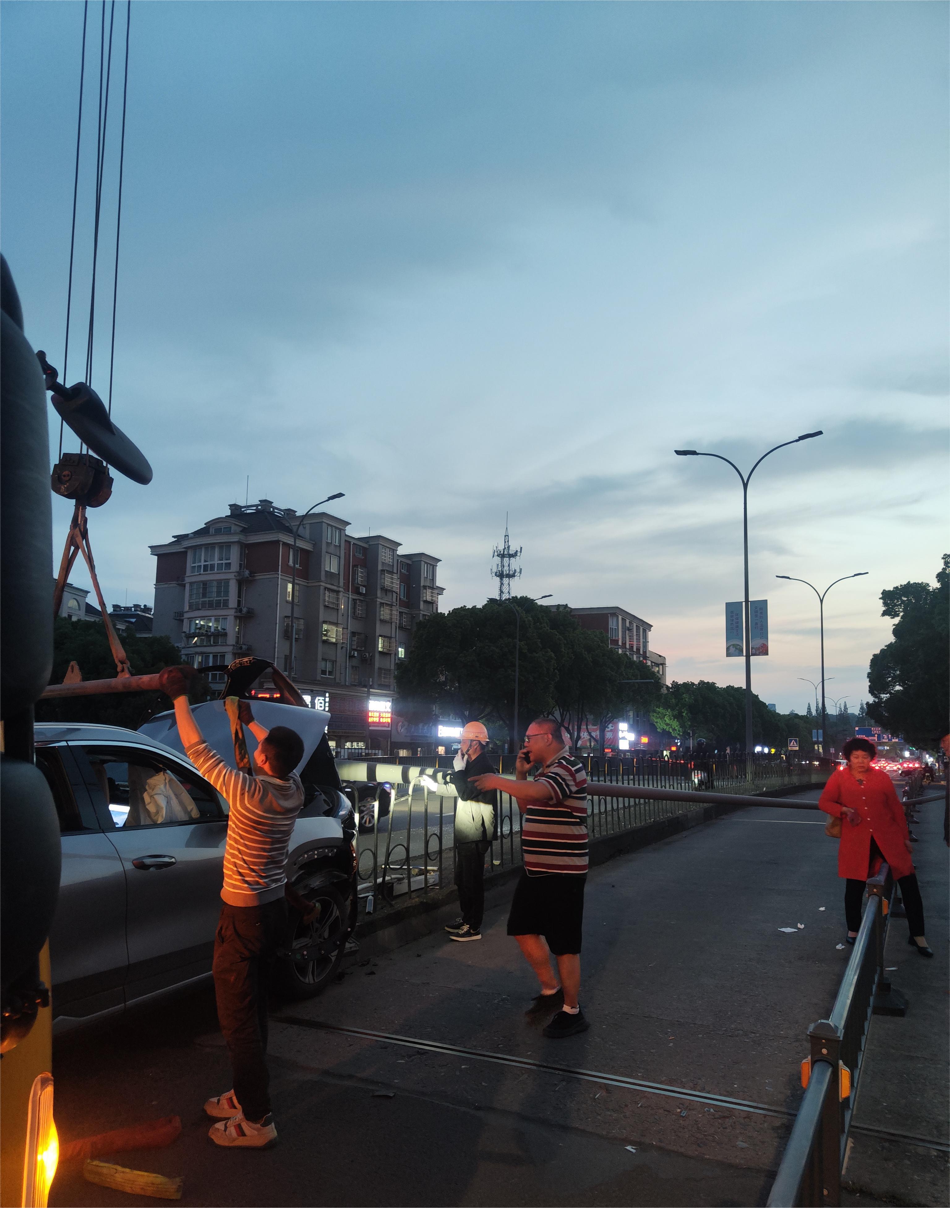 5月6日傍晚18點35分左右,監控中心接到電話報警,子陵路聯盟橋東北有一燈桿被撞,燈桿倒伏影響交通。